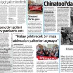 İşçilere çıkış tebligatları çağrıldıkları bir otelde taşeron avukatları tarafından yapıldı. İşten çıkarılan işçi sayısı yüzün üzerinde. İşten çıkarılan işiler bu sabah fabrikanın önüne bir yürüyüş gerçekleştirdi. Farplas Otomotiv’de mücadele işten atmalara, baskıya ve hukuksuzluğa rağmen tüm kararlılığı ile devam ediyor. Geçtiğimiz hafta ücret artışı ve çalışma koşullarının iyileştirilmesi için demokratik tepkilerini gösteren Farplas Otomotiv ve bağlı şirketlerde çalışan yaklaşık iki bin işçi, kendilerine verilen sözlere rağmen yeni bir haksızlık ve saldırıyla karşı karşıya kaldılar. Dün çeşitli bölümlerden işçilere, çağrıldıkları bir otelde taşeron firmaların avukatları tarafından işten çıkış tebligatları yapıldı. Şu ana kadar bu yöntemle işten çıkarılan işçi sayısı yüzü geçti. Farplas Otomotiv işvereni işçilerin taleplerini dikkate almak, sendikalı çalışma isteğine saygı göstermek yerine, geçmişte olduğu gibi yine işçilere saldırmayı tercih etti. İşyerini iş kanununa aykırı şekilde taşeron şirketlere bölen, bu şirketleri de farklı işkollarında göstererek işçilerin sendikalaşmasını bugüne kadar önlemeyi […]