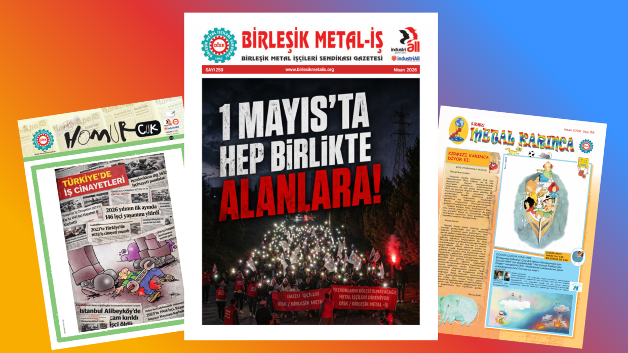 140 sene önce 1 Mayıs’ta sekiz saatlik işgünü talebiyle başlayan büyük işçi mücadelesi, tüm dünyanın emekçilerini ortak bir dava etrafında buluşturmaya devam ediyor. Türkiye’nin metal işçileri olarak biz de bu büyük geleneğin onurlu taşıyıcılarıyız. Birleşik Metal-İş Sendikası olarak Türkiye’de 1 Mayıs’ın ilk kez kitlesel olarak kutlandığı 1976 yılından bu yana kanlı ‘77 1 Mayıs’ı da dahil olmak üzere hep alanlarda olduk. 2026 yılında da aynı yılmaz iradeyle alanlardaki yerimizi alacağız. Bugün dünya işçi sınıfı olarak yine ağır sorunların açığa çıktığı bir konjonktürle karşı karşıyayız. ABD’nin Trump yönetimi altında tırmandırdığı emperyalist müdahaleler Venezuela ile başlayıp İran ile devam etti. Bölgemizde ABD ve İsrail’in Ortadoğu’yu kana bulayan saldırgan politikaları, emperyalist savaşın yıkıcılığını tüm boyutlarıyla gözler önüne serdi. İsrail’in Filistin’deki soykırım politikasına verilen Batı desteği ve son dönemde tırmanan İran savaşı, bölge halklarını ve tüm dünyanın emekçi sınıflarını ciddi bir felaketle sınamayı sürdürüyor. […]