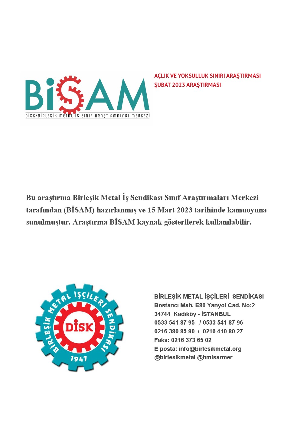 Açlık ve yoksulluk sınırı BİSAM tarafından her ayın 15’inde kamuoyu ile paylaşılmaktadır. Araştırmada, BİSAM tarafından Sağlık Bakanlığı ve Hacettepe Üniversitesi Beslenme ve Diyabetik bölümünün hazırladığı Türkiye’ye Özgü Beslenme Kalıbı’nın, farklı kaynaklardan elde edilen verilerle değerlendirilerek yenilenmesi sonucunda elde edilen BİSAM beslenme kalıbı ile TÜİK harcama gruplarına göre endeks rakamları, TÜİK 2003 yıllı madde fiyatları dikkate alınmıştır. Ancak ekmek fiyatlarında referans değer İstanbul Halk Ekmek, sebze ve meyvede zincir market internet fiyatlarıdır. Meyve-Sebze fiyatı cari aya aittir.