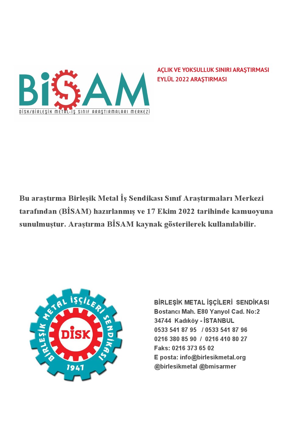 BİSAM tarafından yapılan hesaplamaya göre dört kişilik bir ailenin sağlıklı ve dengeli beslenmesi için aylık yapması gereken harcama tutarı Eylül 2022 için 7 bin 300 liradır. Açlık sınırı üzerinden hanehalkı tüketim harcamaları esas alınarak yapılan hesaplama sonuçlarına göre ise yoksulluk sınırı 25 bin 252 lira olarak gerçekleşmiştir.
