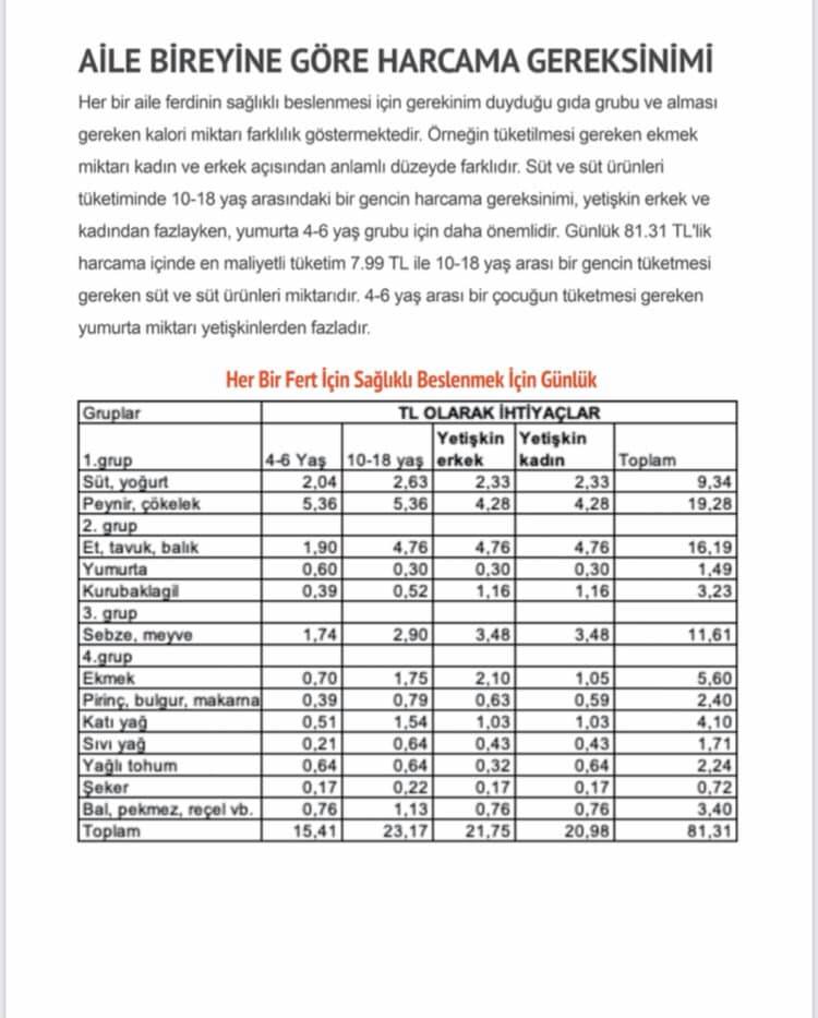- GÜNLÜK BESLENMENİN MALİYETİ 81 LİRA