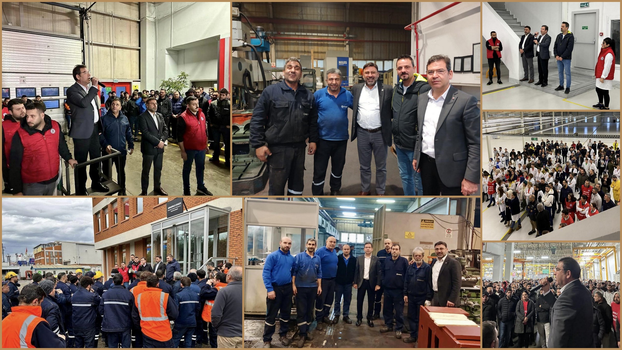 Sendikamız Genel Başkanı Özkan ATAR, MESS Grup TİS kapsamında işyeri ziyaretlerine devam ediyor. Sendikamız Genel Başkanı Özkan ATAR, MESS Grup TİS kapsamında işyeri ziyaretlerine devam ediyor. Sendikamız Genel Yönetim Kurulu üyeleri Genel Örgütlenme Genel Örgütlenme Sekreteri Fehmi ELMACI, Genel Eğitim Sekreteri Özcan ATMACA ve Gebze Şube yöneticilerimizle birlikte ÇAYIROVA BORU ve YÜCEL BORU işçileriyle buluştu. Genel Başkanımız, MESS Grup Toplu İş sözleşmesi ile ilgili önümüzdeki sürece yönelik açıklamalarda bulundu. Genel Başkanımız, “Biz hafta da bir gün olan üretimden gelen gücümüzü kullanma eylemimizi her vardiya da hafta da iki güne çıkardık. Biz Birleşik Metal üyeleri olarak, öyle çatal-kaşık vurarak değil üretimden gelen gücümüzü kullanarak gösterdik” dedi. Genel Başkanımız, MESS’in metal işçilerine reva gördüğü sefalet ücreti teklifine karşı bütün metal işçilerinin hep beraber üretimden gelen gücünü kullanması çağrısında bulundu. Konuşması sık sık sloganlarla kesildi. Sadaka Değil Toplu Sözleşme