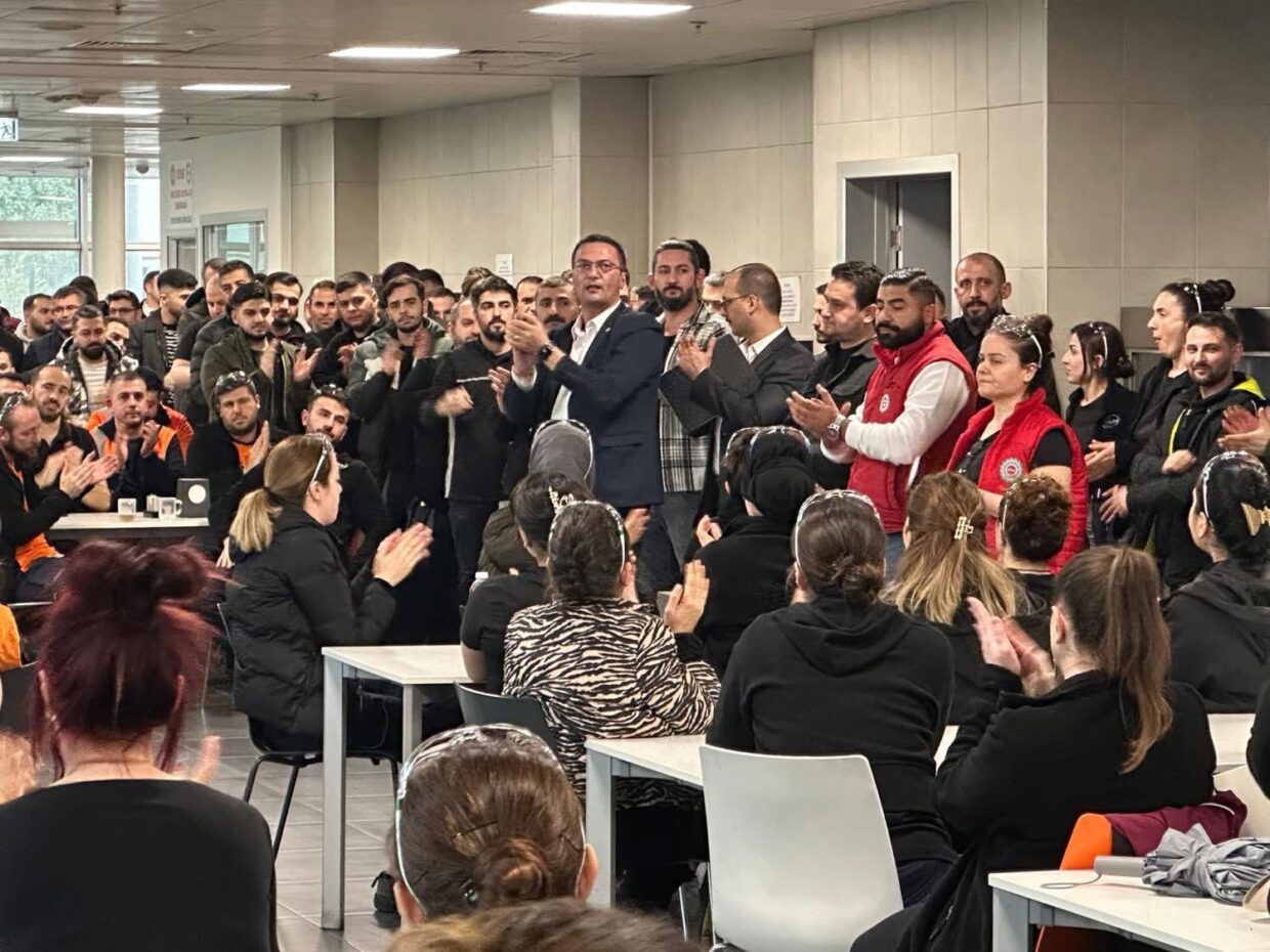 Genel Başkanımız Özkan Atar ve Genel Sekreterimiz Ali Çeltek, Gebze 1 Nolu Şube yöneticilerimizle birlikte Chinatool işyerinde üyelerimizle bir araya geldi. Üyelerimizi tezgâhları başında ziyaret eden yöneticilerimiz, emeğin gündemindeki konular ve sendikamızın mücadele hedefleriyle ilgili onlarla bilgi ve fikir alışverişinde bulundu. Yöneticilerimiz, Chinatool işyeri ziyaretinden ardından Arteche (Esitaş) işyerinde çalışan üyelerimizle de bir araya geldi. Bu işyerimizde bir süre önce üyelerimizin memnuniyeti ve onayıyla imzalanan ilk toplu iş sözleşmemiz, işyeri yöneticilerinin de katıldığı bir pasta töreniyle kutlandı. Törende konuşan Genel Başkanımız Özkan Atar, Türkiye'de özel sektörde çalışan her 100 işçiden yalnızca 7'sinin toplu iş sözleşmesi hakkından yararlanabildiğine dikkat çekerek, "Ülkemizde işçilerin emeğinin, alın terinin karşılığında kendi iradesiyle seçtiği sendikasıyla birlikte toplu sözleşme hakkından yararlanabilmesi ne yazık ki kolay olmuyor. Bu nedenle ülkemizde işçi hakları da demokrasi de gelişemiyor, istenen noktaya gelemiyor. Bu mutluluğu bizlere yaşatan, bu güzel tabloyu ortaya […]