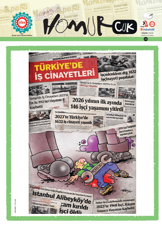 Gazetemizin Nisan 2026 sayısı, “1 Mayıs'ta hep birlikte alanlara!” manşetiyle çıktı. Yayında, Türkiye’de ve dünyada emeğin gündemine, metal işçilerinin ve sendikamızın mücadelesine dair güncel bilgiler, haberler ve yazılar yer alıyor. Gazetemizi, mizah eki Homurcuk ve çocuk eki Kırmızı Metal Karınca ile birlikte pdf ya da flipbook formatında okuyabilir, indirebilirsiniz. İyi okumalar…
