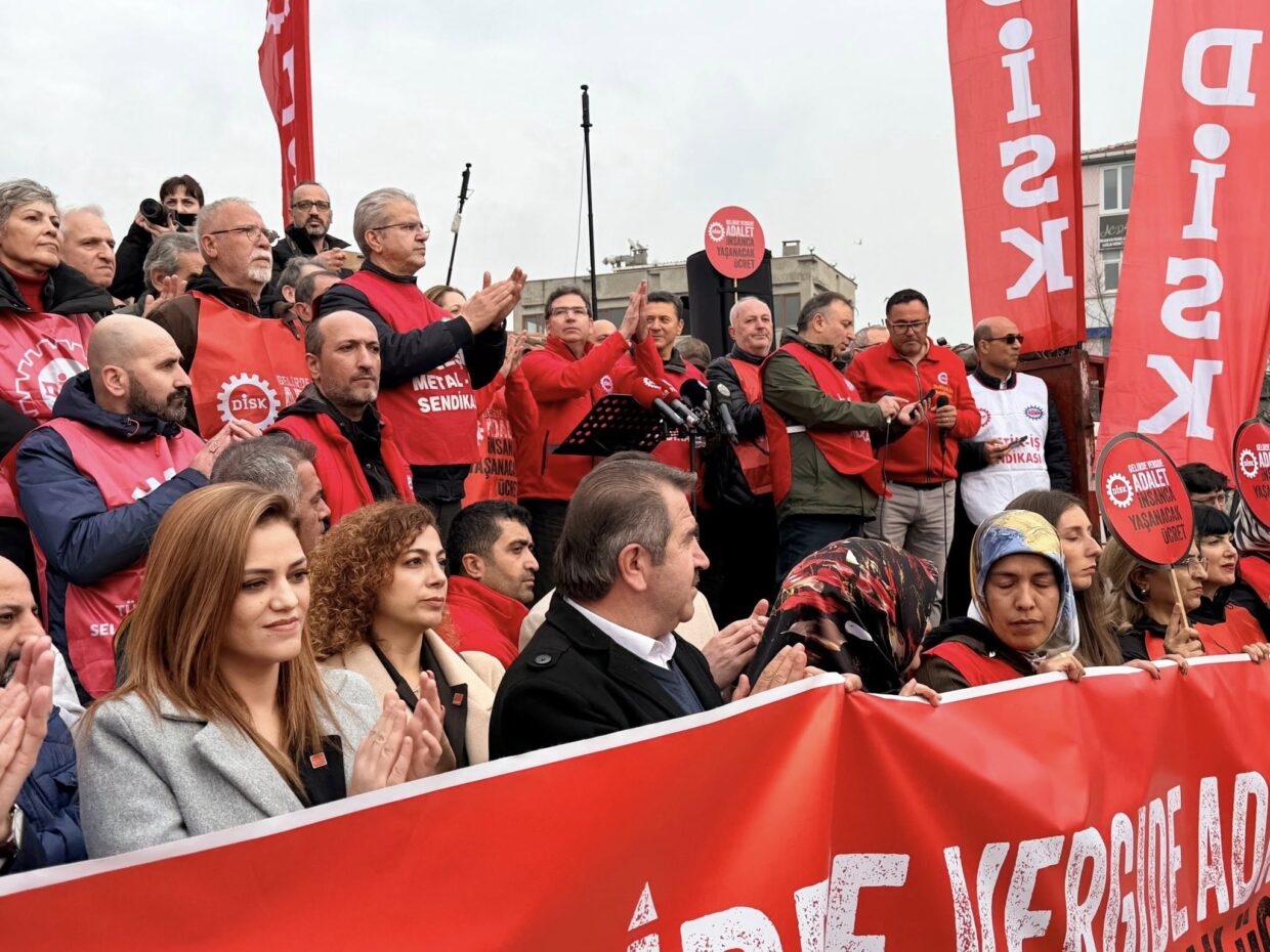 DİSK-AR tarafından hazırlanan "Asgari Ücret ve Vergi Raporu", 1 Temmuz’da İstanbul Taksim'de düzenlenen basın toplantısında, konfederasyonumuz DİSK'in Genel Başkanı Arzu Çerkezoğlu tarafından kamuoyuna açıklandı. Toplantıya, DİSK Genel Başkan Yardımcısı ve sendikamızın Genel Başkanı Özkan Atar'ın yanı sıra Genel Sekreterimiz Ali Çeltek, Genel Mali Sekreterimiz Ali Gündüz ve işyeri temsilcilerimiz de katıldı. Toplantıda asgari ücretle ilgili dile getirilen taleplerimiz şunlar: - Asgari ücret kapsamının düşürülmesi için toplu pazarlık kapsamı genişletilmeli, sendikal hakların kullanımının önündeki engeller kaldırılmalıdır. - Asgari ücret yüksek enflasyon dönemlerinde yılda 4 kez belirlenmelidir. - Asgari ücret tespitinde asgari ücretin ortalama ücret haline geldiği dikkate alınmalıdır. - Asgari ücret artışında resmi enflasyon oranları değil, kişi başına GSYH artışı esas alınmalıdır. - Asgari ücret belirlenirken geçim şartları (yoksulluk sınırı) göz önüne alınmalıdır. - Asgari ücret uluslararası standartlara uygun saptanmalı, işçinin kendisi ve aile birlikte hesaba katılmalıdır. - En düşük emekli […]