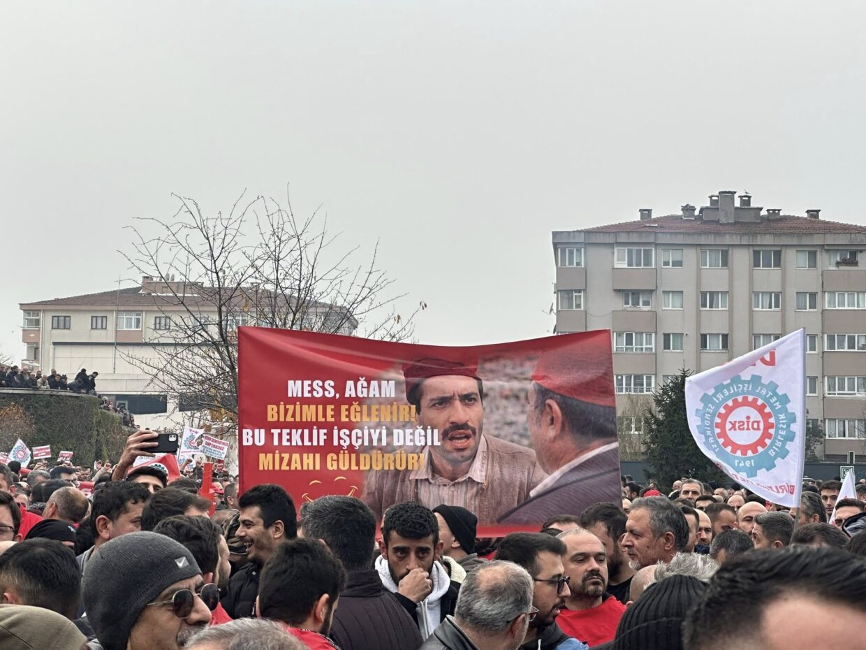 MESS’LE ANLAŞMA YOK: TEKLİF CİDDİYETSİZ, GREV KAPIDA MESS’in çağrısı ile bugün (11 Ocak 2018) yapılan grup toplu sözleşme görüşmelerinden de sonuç çıkmadı. MESS, metal işçilerinin kabul etmeyeceği belli olan, ciddiyetsiz teklifler vermeye devam ediyor. MESS’in bugünkü teklifi göstermektedir ki, MESS metal işçilerinin son aylarda verdiği mücadeleden yeterli mesajı almamış. Oysa, artık grev kapıda.>MESS’in bu günkü teklifi şöyledir: Sözleşme yürürlük süresi 3 yıl. Ücret zammı yüzde 6,4. Diğer 6’şar aylarda enflasyon oranında artış. Zam, işyeri ortalamasına göre verilecek. Sosyal haklarda ise 1. Yıl yüzde 12,80. Diğer yıllarda yıllık enflasyon oranında artış. MESS’in bugünkü teklifi metal işçilerinin verdiği mücadeleyi yükseltmesi gerektiğine işaret etmektedir. MESS’in bugün verdiği teklif greve çıkmayı gerektiren tekliftir. Gün greve hazırlık günüdür. Metal işçileri, büyük bir kararlılık içinde, çok geç olmadan grev kararları almaya başlayacaktır. MESS, sorunları masada çözmeye yanaşmamakta, metal işçilerini kavgaya davet etmektedir. Dün bu kavgadan kaçmadık, bugün […]