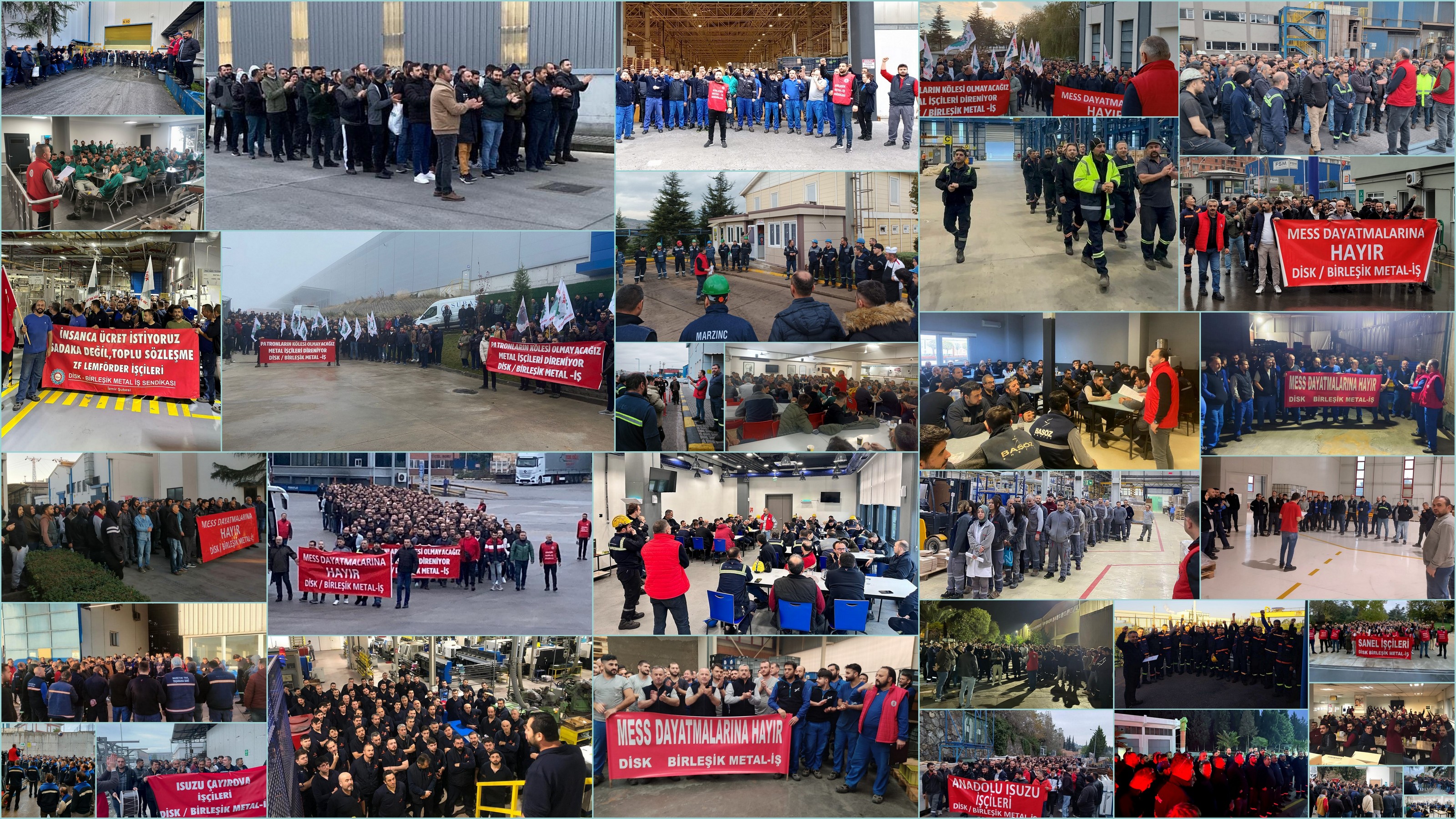 Sendikamız Birleşik Metal İş ile Şahinkul Makina işyeri arasında 21 Ağustos 2023 tarihinde başlayan toplu iş sözleşmesi görüşmeleri, uyuşmazlıkla sonuçlandı. Uyuşmazlığın ardından 5 Aralık tarihinde grev kararımız aldık ve 21 Aralık 2023 tarihinde Şahinkul işyerinde grevimize başlıyoruz. Şahinkul işvereni sürecin başından itibaren toplu sözleşme toplantı çağrılarımıza hiçbir biçimde yanıt vermedi. İşverenin toplantıları katılmamasından ötürü toplu sözleşme sürecimiz Bursa Çalışma ve İş Kurumu üzerinden devam etti. Şahinkul işvereni işçilerin kendi seçtiği sendikasıyla elde ettiği sendikalı çalışma düzenini sonlandırmak için uzun süredir yoğun bir çaba içerisinde. Şahinkul’da temsilcilerimizin işten atılmasıyla başlayan sendika karşıtı tutum ve davranışlar, toplu sözleşme sürecinin hemen başında üyelerimizi sendikadan zorla istifa ettirme girişimleriyle sürdü. Üyelerimiz başka bir sendikaya üye olmaya zorlandı. İşçilerin Anayasal hakkı olan sendika seçme özgürlüğü ve toplu sözleme hakkı Şahinkul’da ayaklar altına alındı. Gece gündüz çalışıp evlerine ekmek götürmeye çalışan Şahinkul işçilerinin tek isteği sendika […]