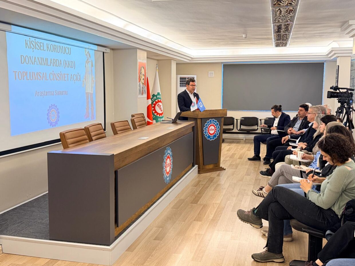 Sendikamızın gerçekleştirdiği “Kişisel Koruyucu Donanımlarda (KKD) Toplumsal Cinsiyet Açığı” araştırmasının öne çıkan bulguları, bugün sendikamızın genel merkezinde düzenlenen basın toplantısında kamuoyuyla paylaşıldı.