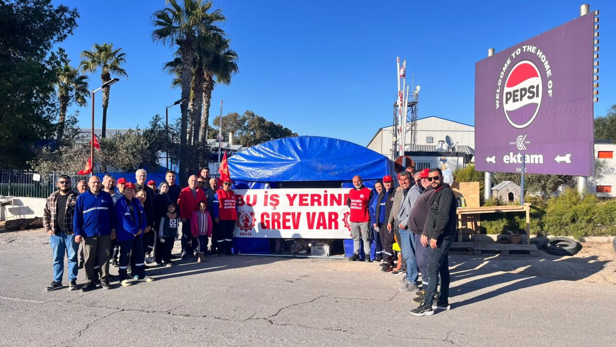 Kıbrıs sendikaları, grevdeki işçilerle dayanışmak için 8 Mart Dünya Kadınlar Günü’nü Ektam grev çadırının önünde karşıladı. Etkinliğe, Genel Sekreterimiz ve Genel Örgütlenme Sekreterimiz de katıldı.