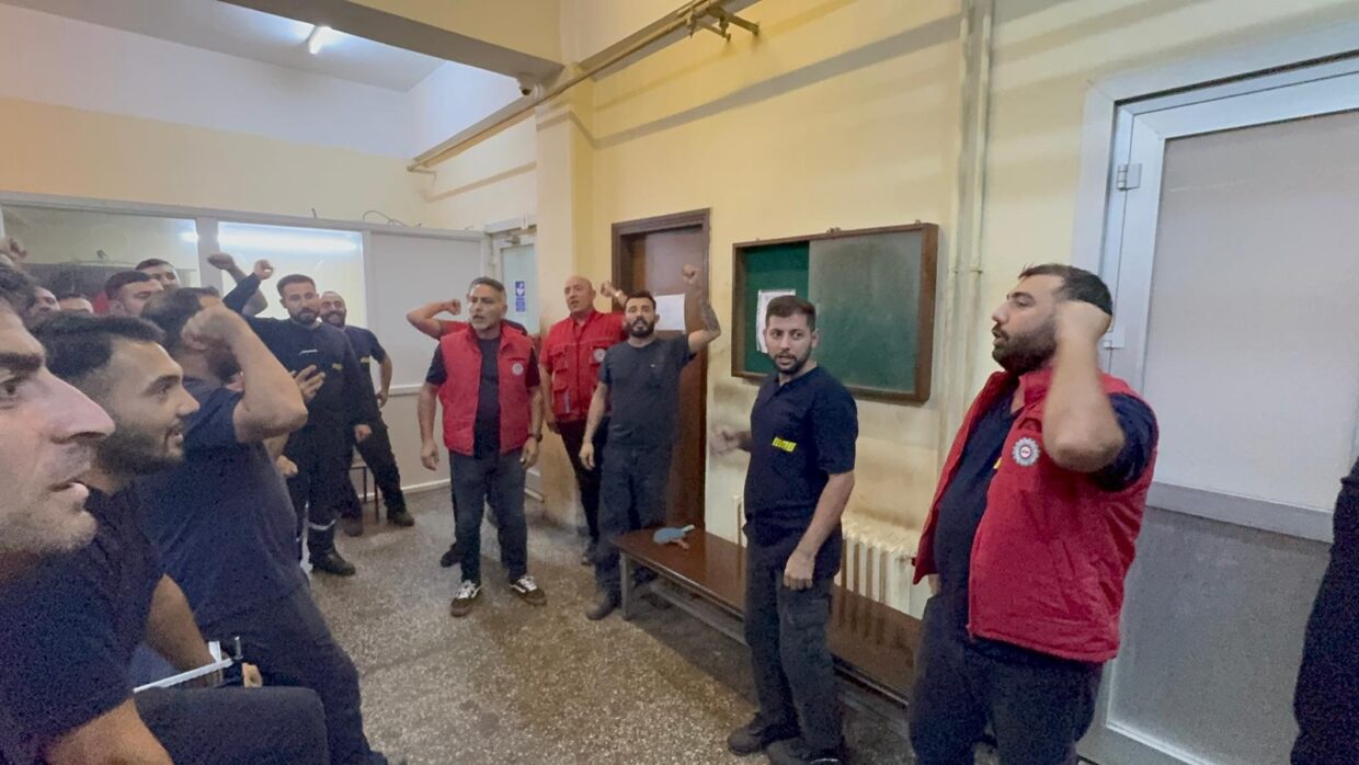 Mert Akışkan Gücü işçileri, attıkları coşkulu sloganlarla toplu sözleşme talepleri için mücadele kararlılığını ortaya koydu.
