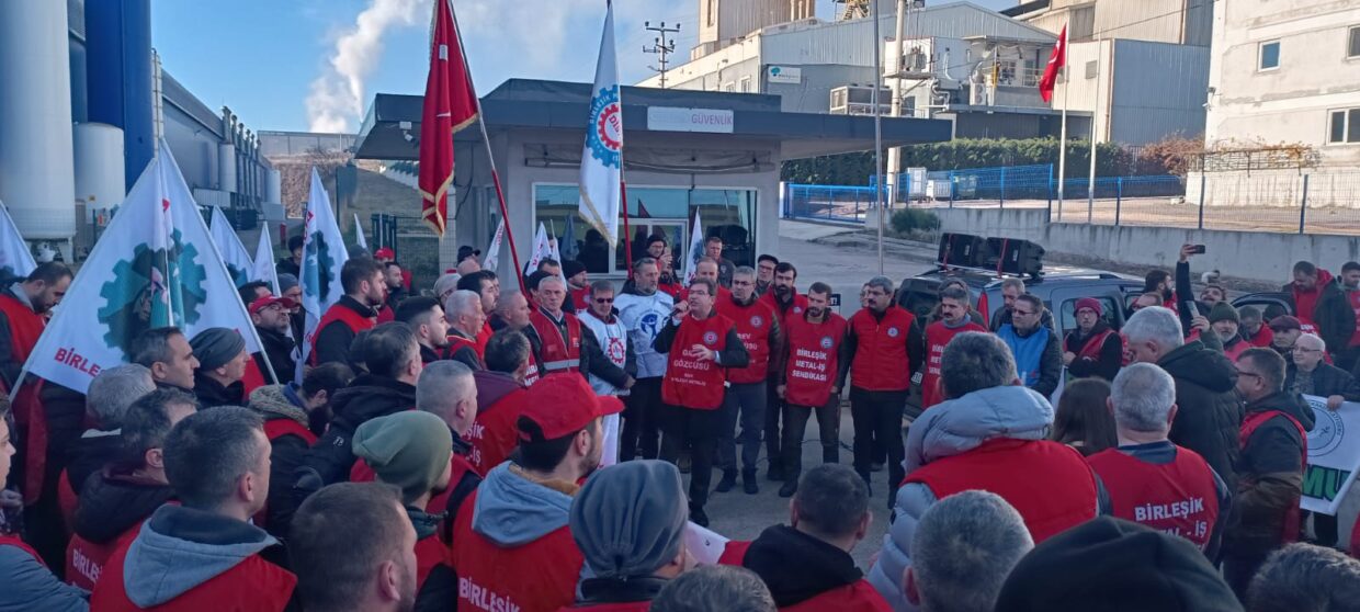 DİSK Birleşik Metal-İş Sendikası’na üye metal işçileri, Anayasa’ya ve Anayasa Mahkemesi kararlarına aykırı, haksız ve hukuksuz yasaklamalara boyun eğmeyerek grevlerini kararlılıkla sürdürüyor.