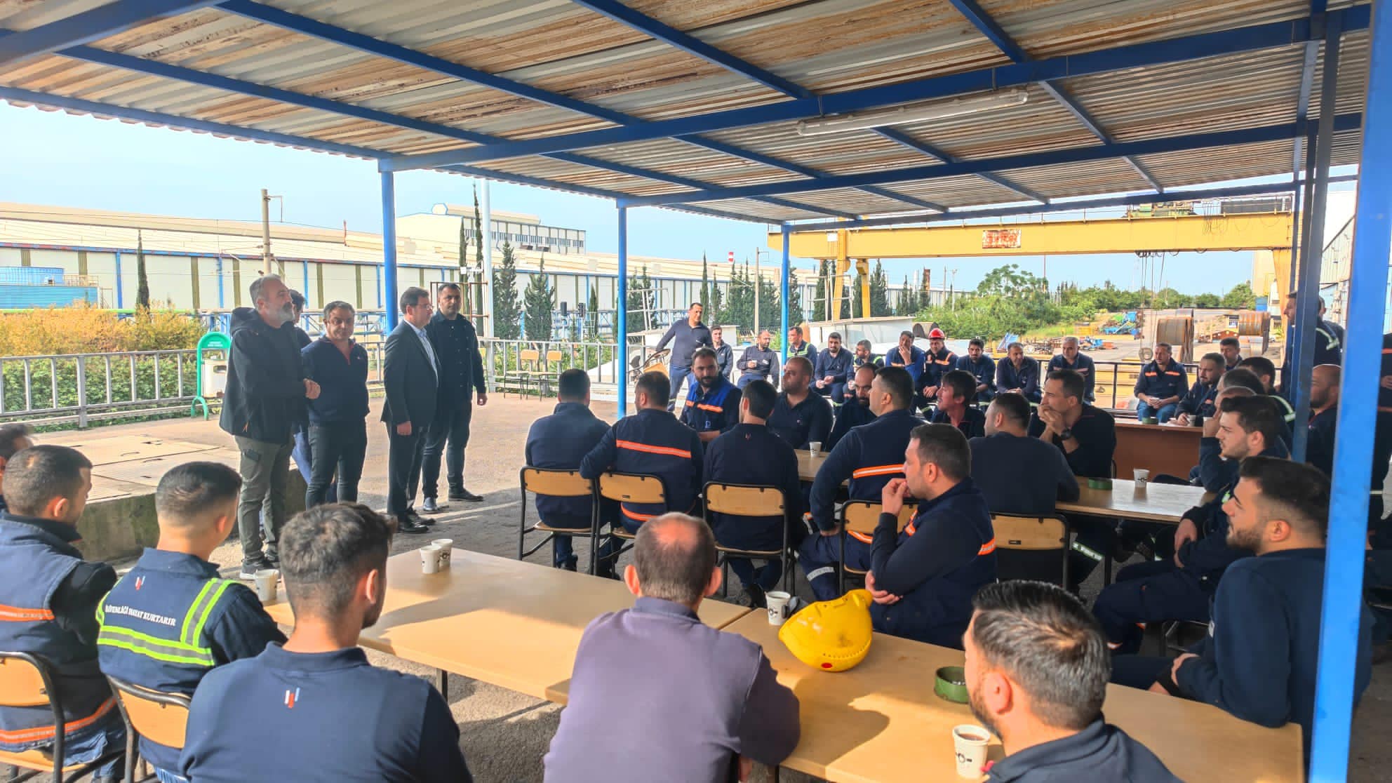 Genel Başkanımız Özkan Atar ve Genel Sekreterimiz Ali Çeltek, Anadolu Şube yöneticilerimizle birlikte 14 Ekim’de Hatay Dörtyol'daki Çayırova Boru işyerinde çalışan üyelerimizi ziyaret etti. Yöneticilerimiz, emeğin gündemindeki önemli başlıklar ve sendikamızın mücadele hedefleriyle ilgili üyelerimizi bilgilendirdi, onların görüş ve taleplerini dinledi