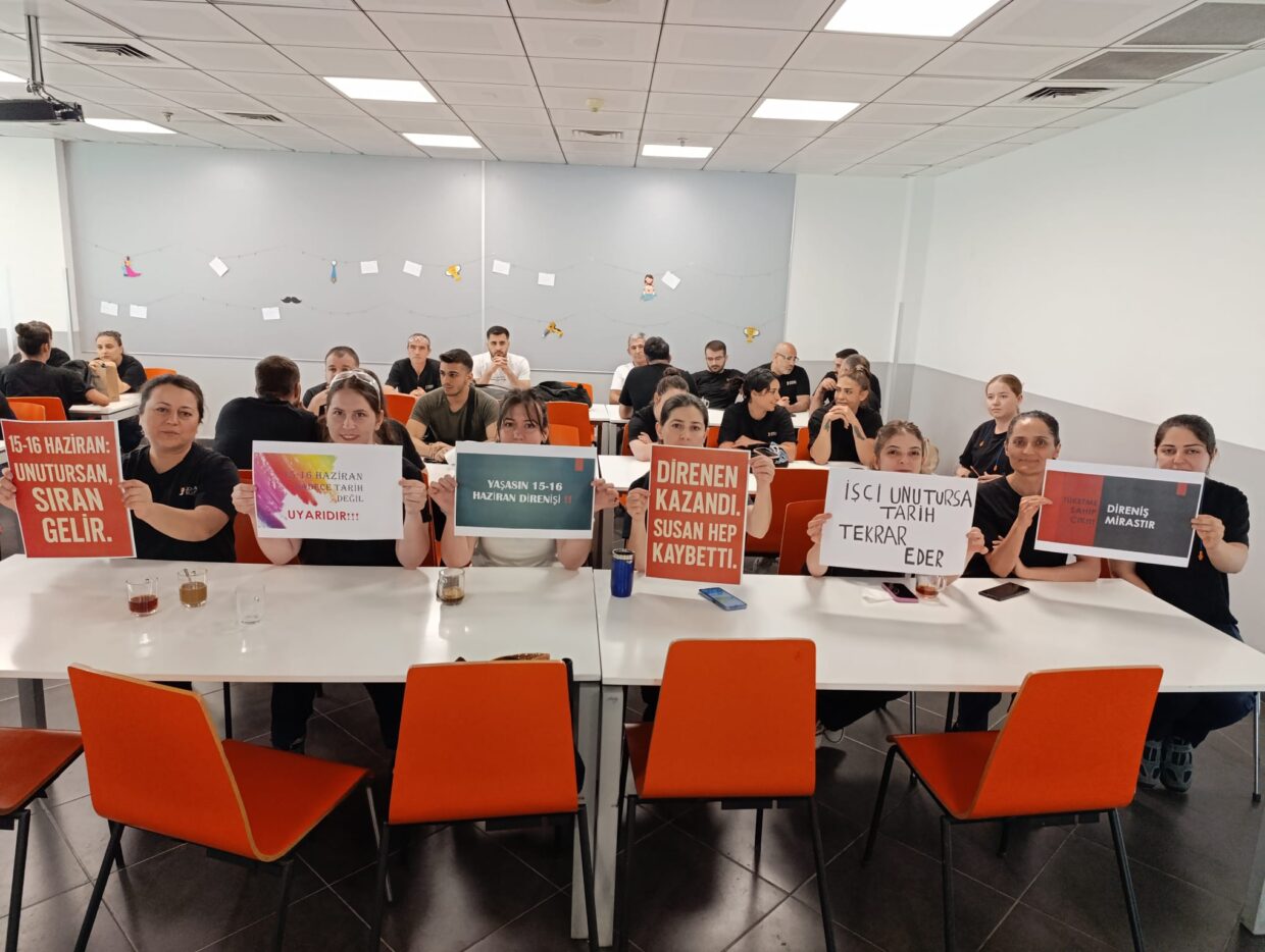 Dilovası’nda kurulu Systemair HSK işyerinde çalışan işçilerin sendikamıza üye olmasının ardından şirket yönetiminin üyelerimize yönelik uyguladığı işten çıkarma, ücretsiz izin ve fiziki-psikolojik baskı kamuoyunun bilgisi dahilindedir. Sendikamız ilk günden itibaren ulusal ve uluslararası kamuoyunu objektif ve düzenli olarak bilgilendirmiştir. Öte yandan şirket yönetiminin sendikalaşmaya yönelik tahammülsüz tutumundan vazgeçerek, işyerinde çalışan işçileri temsil eden sendikamızla görüşmelere başlaması için girişimlerimiz de kesintisiz olarak sürdürülmüştür. Ancak Systemair HSK yönetiminin çalışma barışı için çözüm yolları aramak yerine hukuksuzlukta ısrarı sürüyor. Dün kamuoyuna yapılan ve baştan sona bugüne kadar şirket yönetiminin sergilediği hak ve hukuk tanımayan tutuma dayanak oluşturma niyeti taşıdığı anlaşılan açıklama da bu yöndedir. Şirket yönetimi yaptığı açıklamada sendikamızın üye sayısı olarak işyerinde yeterli çoğunluğu sağlamadığını, Bakanlığa kendilerine sadece sendikamızın işyerinde yetki tespiti isteminde bulunduğunu bildirdiğini ifade etmektedir. Oysa sendikamız işyerinde 6356 sayılı yasanın aradığı yeterli üye çoğunluğunu sağlamış, Çalışma, Aile ve Sosyal […]