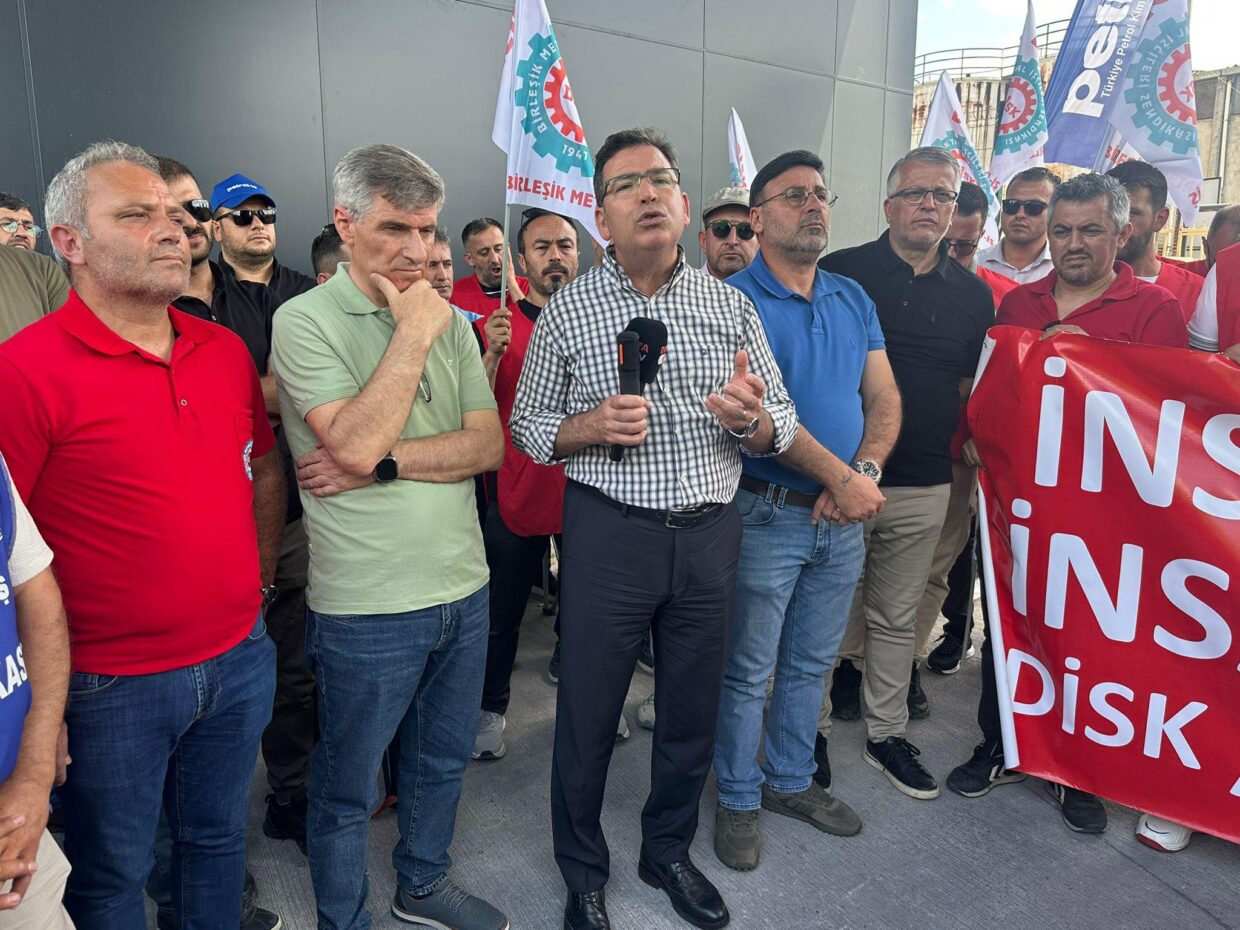 Ziyarette konuşan Petrol-İş Genel Başkanı Süleyman Akyüz, sendikamıza gösterdiği dayanışma için teşekkür etti.