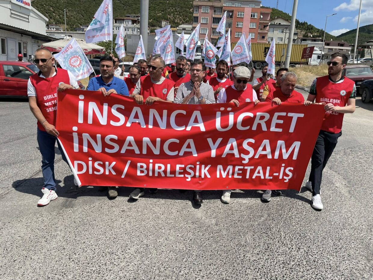 Metal işçisi MESS Dayatmalarına Karşı Mücadeleyi ALANLARA taşıdı! Metal işçisi Çorlu’da taleplerini haykırdı: Geçinemiyoruz Metal işçisi Çorlu Heykel Meydanında protesto gösterisi gerçekleştirdi. Salih Omurtak Caddesi Çeşme Durağı mevkiinde bir araya gelen metal işçileri, slogan atarak, basın açıklamasının yapılacağı Atatürk Meydanı’na yürüdü. Yürüyüşün ardından Sendikamız Genel Başkanı Özkan ATAR; Çorlu Heykel Meydanı’ndan seslendi. "Metal işçileri İnsanca onuruna yakışacak ve alınterinin karşılığını istiyor. MESS bize sefalet ücreti dayattı. Metal işçileri ağır bir yoksullukla karşı karşıya. Son 2 yıldır uygulanan ve halen devam eden ekonomik programların neticesinde hayat pahalılığı katlanılamaz bir noktaya geldi. Ücretlerimiz enflasyon karşısında her geçen gün erirken, metal patronları bizim sırtımızdan karlarına kar katmaya devam ediyorlar. Artık bıçak kemikte. Fabrikalardan geçinemiyoruz çığlıkları yükseliyor.” Dedi. Sendikamız Genel Başkanı Özkan ATAR; MESS’in sefalet teklifine ve kazanılmış haklarımıza yönelik dayatmacı tavrına karşı mücadele çağrısında bulundu. Genel Başkanımız İşyerlerinde eylemlerimizi yoğunlaştırıyoruz. Grev hazırlıkları kapsamında […]