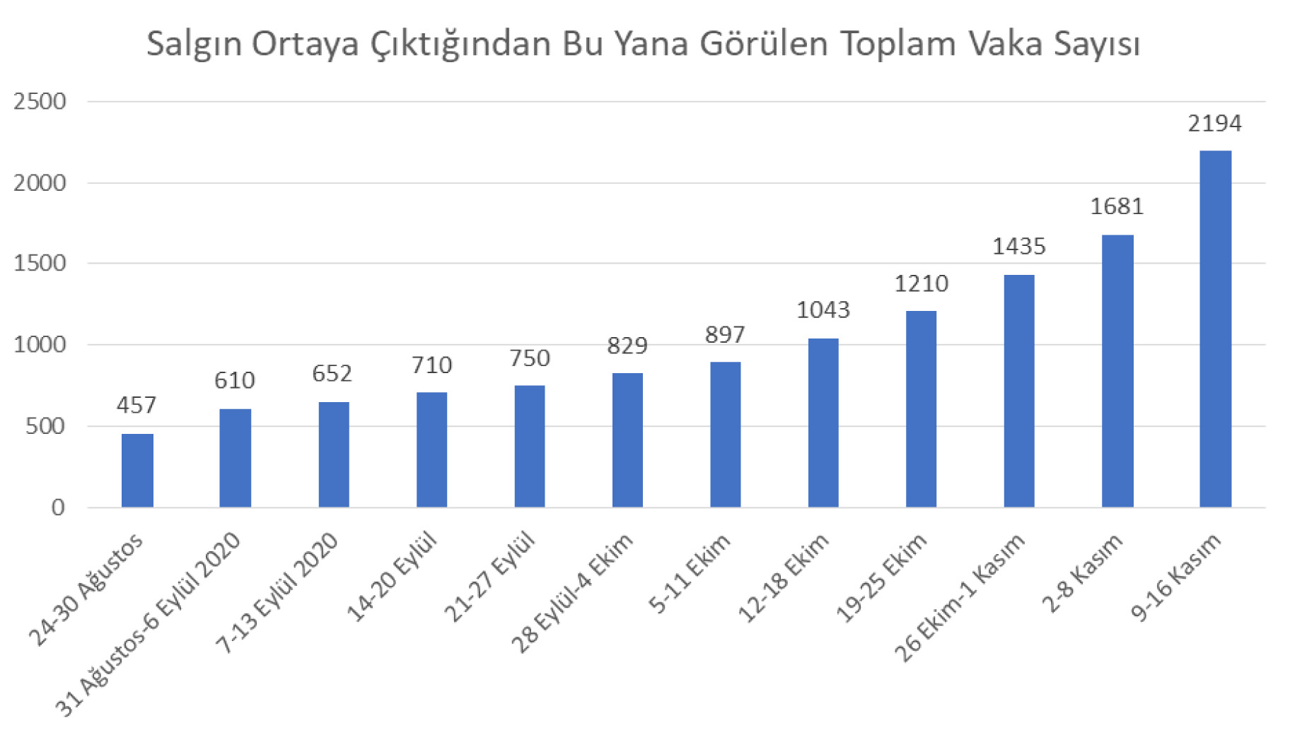 31 Ağustos-6 Eylül 2020 haftasında vaka sayısı 207’si Mersin, Kırşehir ve Ankara’da kurulu olan 3 fabrikada olmak 278 olarak tespit edilmiştir. Bu işyerlerinde salgının kontrol edilmesi ile birlikte 28 Eylül-4 Ekim 2020 tarihlerinde aktif vaka sayısı 88’e gerilemiştir. Ancak bu haftadan itibaren işyerlerindeki aktif vaka sayısı hızlı bir artış kaydetmiştir. 9-16 Kasım 2020 Haftası’ndaki aktif vaka sayısı 771 ile 28 Eylül-4 Ekim 2020 haftasının aktif vaka sayısının yaklaşık 9 katıdır. Aktif vaka sayısında bu dönemde yaşanan artış büyük oranda, üye yoğunluğunun olduğu, Gebze ve İstanbul Anadolu yakasındaki işyerlerindeki artıştan kaynaklanmıştır. Bu dönemde aktif vaka sayısı söz konusu bölgelerde 39’dan 347’ye fırlamıştır. Bu dönemde Covid 19 tanısı konulmuş işçi sayısının %30’a ulaştığı işyerlerimiz olmuştur.