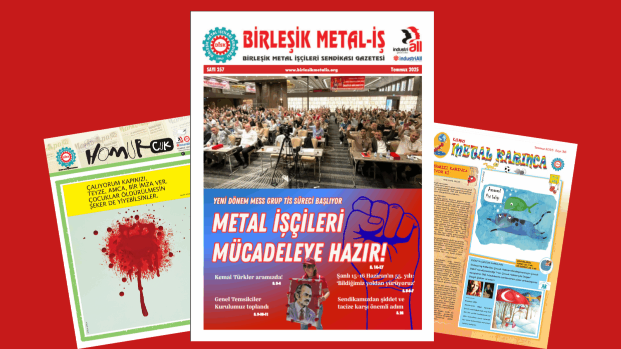 Gazetemizin Temmuz 2025 sayısı, “Yeni Dönem MESS Grup TİS süreci başlıyor / Metal işçileri mücadeleye hazır!” manşetiyle çıktı. Yayında, Türkiye’de ve dünyada emeğin gündemine, metal işçilerinin ve sendikamızın mücadelesine dair en güncel bilgiler, haberler ve yazılar yer alıyor. Gazetemizi, mizah eki Homurcuk ve çocuk eki Kırmızı Metal Karınca ile birlikte pdf formatında okuyabilir, indirebilirsiniz. İyi okumalar... Gazetemizi artık Flipbook formatında da okuyabilirsiniz