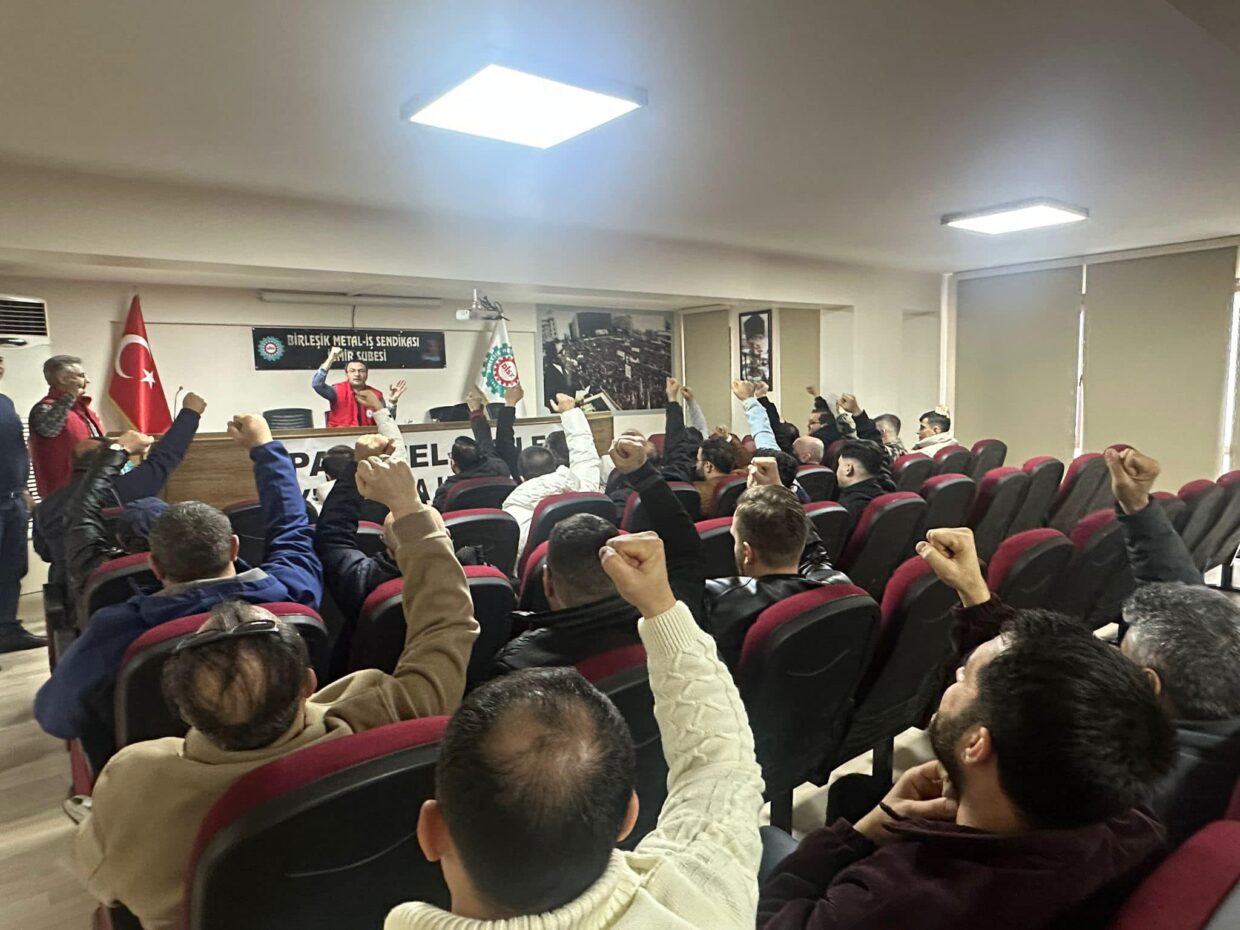 Sakarya Hendek'te bulunan, yeni örgütlendiğimiz SAG işyerinde 1 öncü üyemizin işten atılması üzerine başlattığımız direniş 17'nci gününü geride bırakırken, sendikal hakları için mücadelelerini kararlılıkla sürdüren SAG işçileri, sendikamızın yöneticileri ve uzmanlarıyla bir araya geldi. Sendikamızın Genel Başkanı Özkan Atar, Genel Örgütlenme Sekreteri Fehmi Elmacı, Kocaeli Şubemizin yöneticileri ve uzmanlarımızın da katıldığı toplantıda, sendikamıza, işyerindeki sürece, mücadelemize ve emeğin gündemindeki önemli başlıklara ilişkin bilgi ve görüş alışverişinde bulunuldu. Toplantıda SAG işçileri "Sendika haktır engellenemez!", "Yaşasın örgütlü mücadelemiz!", "İnadına sendika inadına DİSK!" sloganları atarak mücadele kararlılıklarını bir kez daha ortaya koydu.