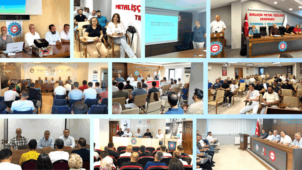 Toplu Sözleşme Dairemiz, MESS Grup Toplu İş Sözleşmesi de dahil olmak üzere önümüzdeki dönem toplu sözleşmelerine hazırlık çalışmaları kapsamında tüm şubelerimizin Temsilciler Kurullarında bilgilendirme toplantıları düzenledi. Toplantılarda ülkenin, sektörün, işyerlerimizin durumu değerlendirildi Toplu Sözleşme Dairemiz, MESS 2025-2027 Grup Toplu İş Sözleşmesi de dahil olmak üzere önümüzde dönem toplu sözleşmelerine hazırlık çalışmaları kapsamında, tüm şubelerimizin Temsilciler Kurullarında bilgilendirme toplantıları düzenledi.Bu kapsamda 16 Haziran’da Eskişehir Şubemizin, 17 Haziran’da ise Bursa Şubemizin temsilcileriyle birer toplantı gerçekleştirildi.18 Haziran’da Gebze 1 Nolu Şubemizin temsilcileriyle sendikamızın genel merkezinde bir toplantı yapıldı.Ardından 20 Haziran’da İzmir ve Manisa Şubelerimizin, 23 Haziran’da Anadolu Şubemizin, 25 Haziran’da Trakya Şubemizin, 26 Haziran’da Kocaeli Şubemizin, 27 Haziran’da İstanbul 1 Nolu Şubemizin ve son olarak bugün (30 Haziran) Gebze 2 Nolu Şubemizin temsilcileriyle bir araya gelindi.Sendikamızın Genel Sekreteri Ali Çeltek’in açış konuşmasını yaptığı toplantılara, şube yöneticilerimiz, toplu sözleşme uzmanımız ve şubelerimize bağlı işyeri […]